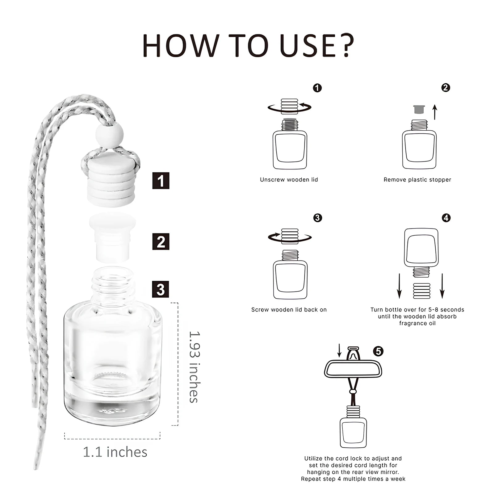 Avoid contact with painted/plastic surfaces—fragrance oils can stain. Hang freely.
